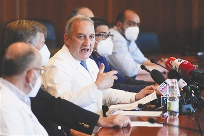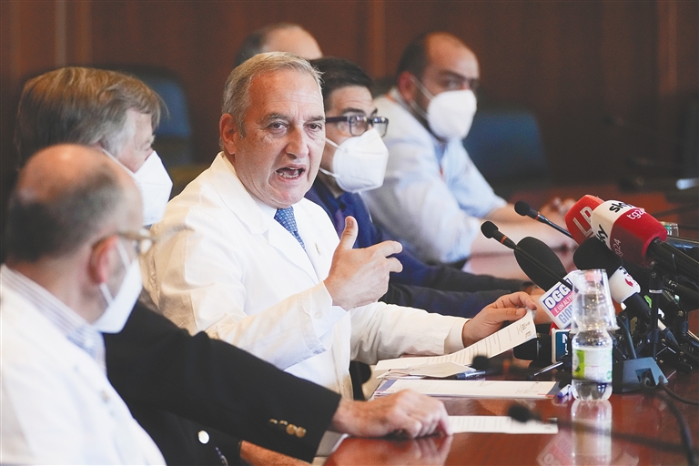 5月20日,在意大利罗马,意大利国家传染病研究所斯帕兰扎尼医院负责人在新闻发布会上讲话。新华社/美联