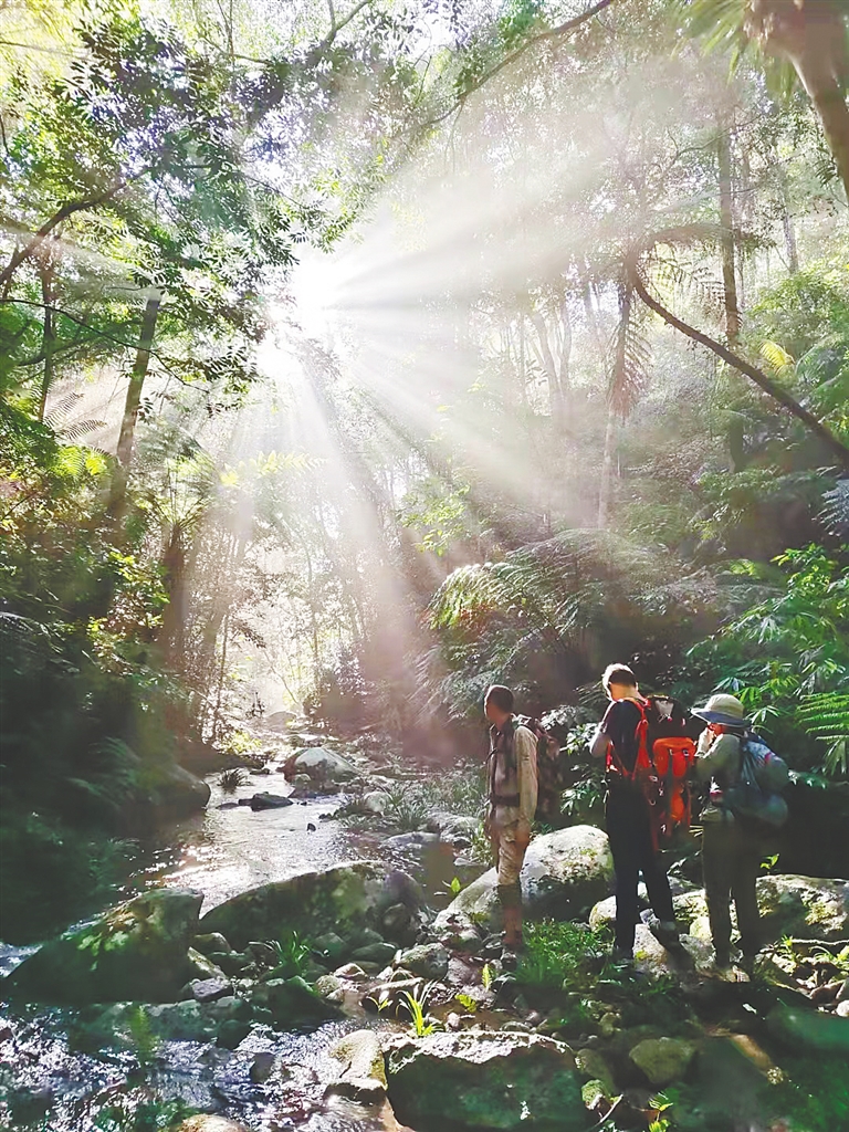 袁浪兴是位谦虚又热情的植物达人,曾在海口畓榃湿地研究所(以下简称“畓榃”)工作。叶片熠熠生辉的彩虹卷柏,正是他与畓榃同事在野外工作时发现的,这也是畓榃在生态监测过程中发现并被正式发表的第一个新物种。