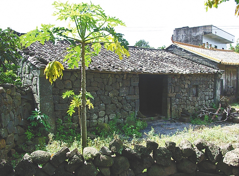 走进儒林村,只见土地平旷,屋舍俨然,阡陌交通,鸡犬相闻。村民指着一间旧房舍说:这是儒林石屋,建于清代,是祭祀入村始祖的祠堂。石屋有三个开间,外面由火山岩砌筑,砌石或大或小,或圆或方,因陋就简,混杂交错,浑然天成。