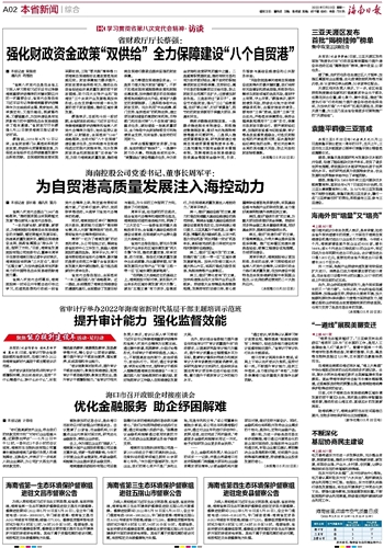 强化财政资金政策“双供给” 全力保障建设“八个自贸港”