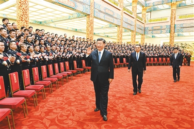 上午10时30分,习近平等来到人民大会堂金色大厅,全场响起热烈掌声。习近平等向代表们挥手致意,同大家亲切交流并合影留念。