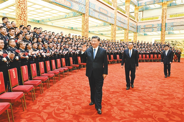 郭声琨参加会见并在表彰大会上讲话。他指出,全国公安机关要以习近平新时代中国特色社会主义思想为指导,深入贯彻习近平法治思想,全面贯彻党的十九大和十九届历次全会精神,深刻领悟“两个确立”的决定性意义,增强“四个意识”、坚定“四个自信”、做到“两个维护”,忠实践行对党忠诚、服务人民、执法公正、纪律严明的总要求,学习弘扬英模精神,全力做好防风险、保安全、护稳定各项工作,以实际行动迎接党的二十大胜利召开。