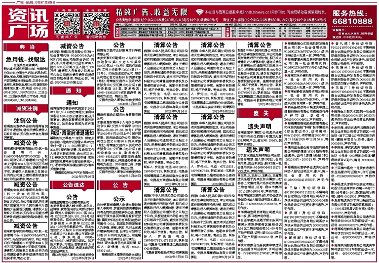 ●海南鸿旭物流有限公司遗失车牌号琼E23922车的营运证一本,证号: 462000063277,声明作废。