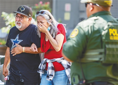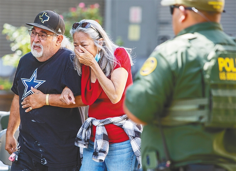 5月24日,在美国得克萨斯州南部尤瓦尔迪市,枪击事件发生后人们惊魂未定。