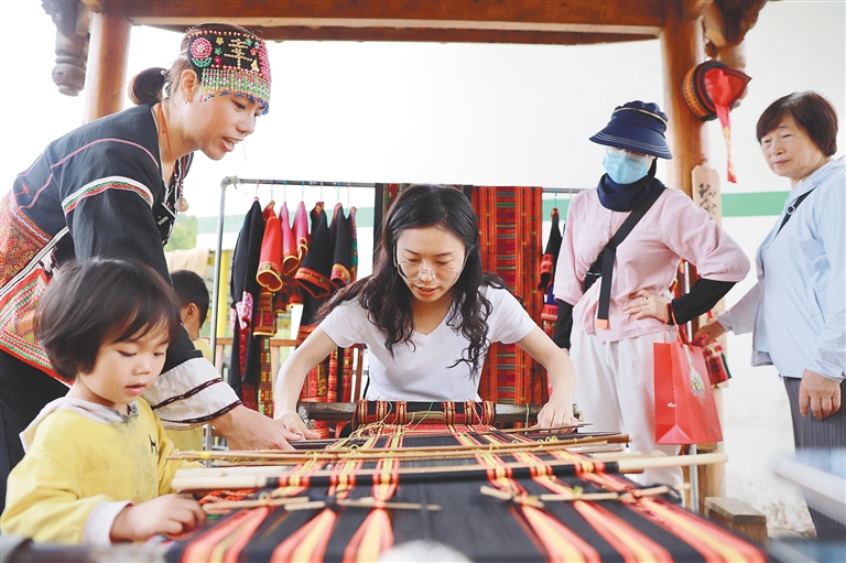 采访结束准备离开毛纳村时,记者遇见了来自吉林的游客杨家森。他一手提着两罐糯米酒,一手拿着一袋大叶茶。“我在毛纳村感受到了淳朴的黎族文化和热带风情,这里山水秀美,值得再来。”杨家森说。