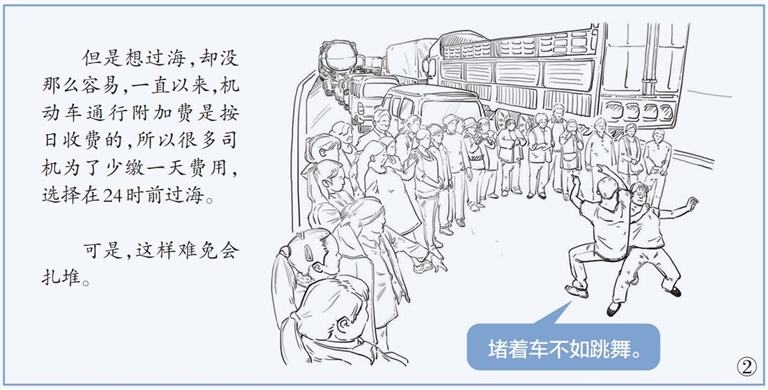 “通则不痛,痛则不通。”货车跑起来,物流才能动起来;道路通畅了,心气才能顺。从探索“一窗通办”到实现“一站式过海”,货车过海时间大为压缩、日益高效便捷的背后,是服务观念改进,是改革创新发力,是数字技术加持——围绕货车司机的需求,扭住“过海慢”的痛点,将政企之间的壁垒打通,将复杂的流程整合,将分散的功能集成,靠制度发力,用制度管事。