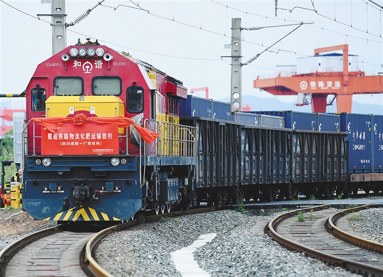 当日,一列满载50个集装箱的化肥班列从成都国际铁路港开往广西钦州港,标志着西部陆海新通道海铁联运化肥班列顺利开行。据悉,该班列抵达钦州港后,货物将转乘海船运往防城港,最后海运出口至巴西。