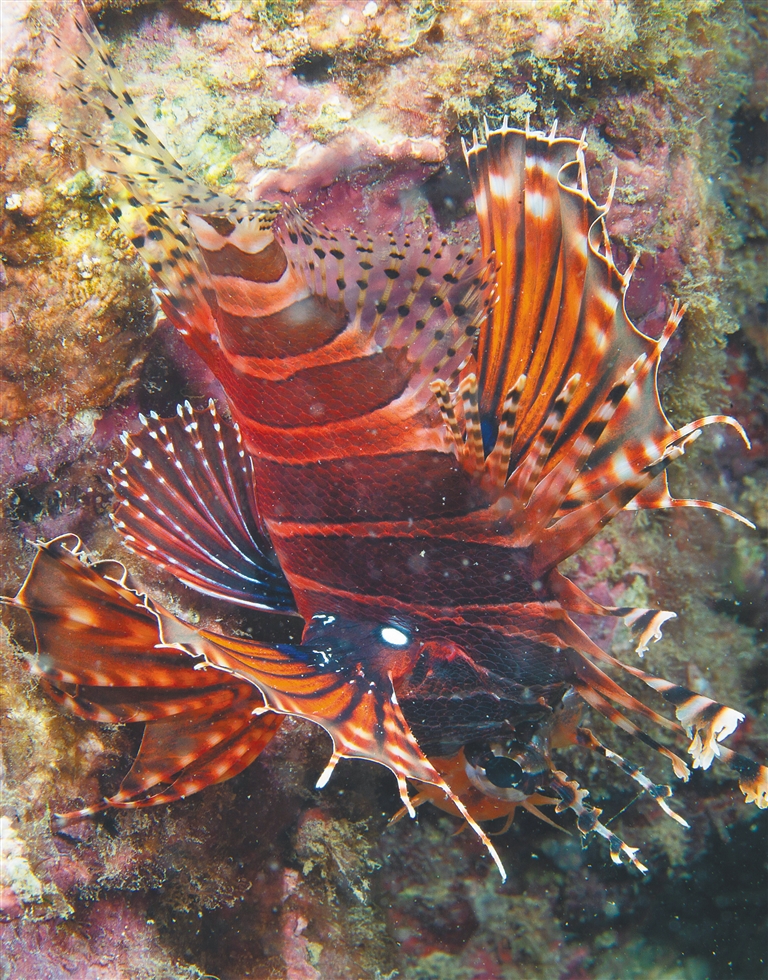在分界洲岛海域,狮子鱼在海底游动(5月27日摄)。