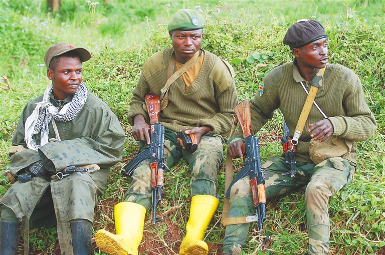 5月25日,刚果(金)政府军军人在刚果(金)北基伍省首府戈马市郊区休息。