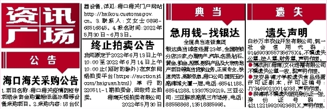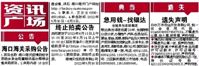 我司原定于2022年6月13日上午10:00至2022年6月14日上午10:00止(延时的除外)在京东网络拍卖平台(https://auction.jd.com/haiguan.html)举行的220511-1期拍卖会,因故终止拍卖。