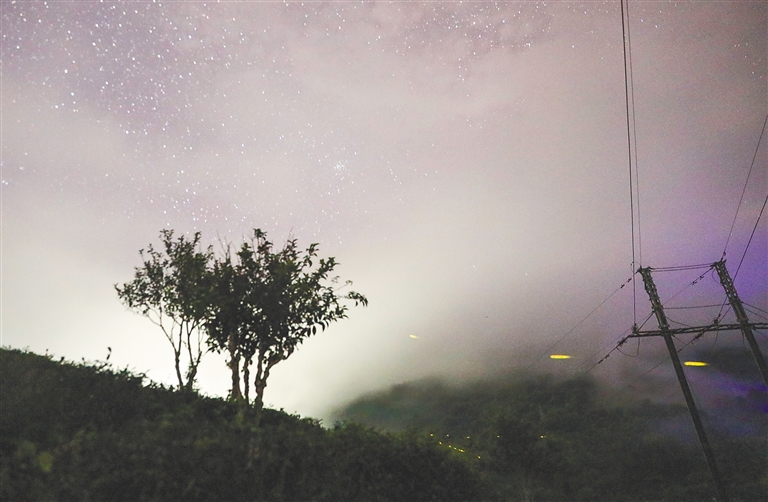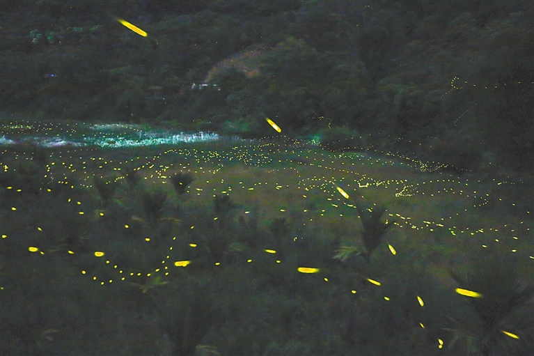 一夜之间,本就生活在五指山中的萤火虫,像被点燃的烟火,照亮了河谷和周围的茶园。