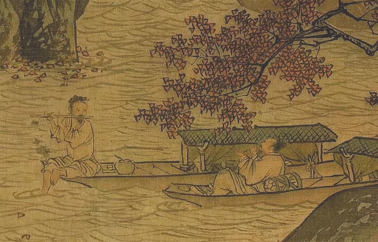坐船的方式不仅改变了画家的生活方式,同时也影响着绘画的题材。文人画中多出现舟行题材,而画中小船多为书画船。甚至画雄壮的大山大水,于前景处,都巧妙地停靠着一艘小船,为表达“可游可行可居”的画面意境。