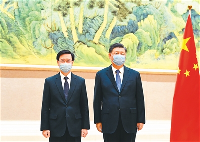 习近平强调,今年适逢香港回归祖国25周年。25年来,尽管经历了许多风雨挑战,但“一国两制”在香港的实践取得了举世公认的成功。中央全面准确贯彻“一国两制”方针的决心从没有动摇,更不会改变。在中央政府、香港特别行政区政府和社会各界的共同努力下,香港已实现由乱到治的重大转折,正处在由治及兴的关键时期。我相信,新一届特别行政区政府施政一定会展现新气象,香港发展一定会谱写新篇章。
