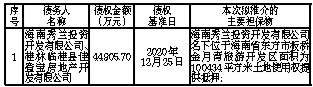 海南秀兰投资开发有限公司名下位于海南省东方市板桥金月湾旅游开发区面积为100434平方米土地使用权为该笔债权抵押物之一(分为两个土地证),该土地为海南秀兰金月湾·阳光海国际养生文化城项目用地,土地性质为住宿餐饮用地,两地块容积率为0.5、0.6。该抵押物目前为净地,属于板桥镇金月湾旅游规划区内,宗地自然环境优美,景观环境质量优,适宜作为旅馆用地,宗地所在区域地形起伏不大,地势较平坦。该项目债权债务清晰,投资方式灵活,周边区域环境优美、交通便捷。欢迎意向投资者与中国华融河北分公司进行洽谈!联系人:孙经理、李经理。联系电话:0311-89291762、0311-89291749。