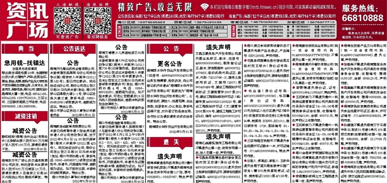 ●海南琼免投资集团有限公司遗失食品经营许可证正、副本,许可证编号:JY14690052069233,声明作废。