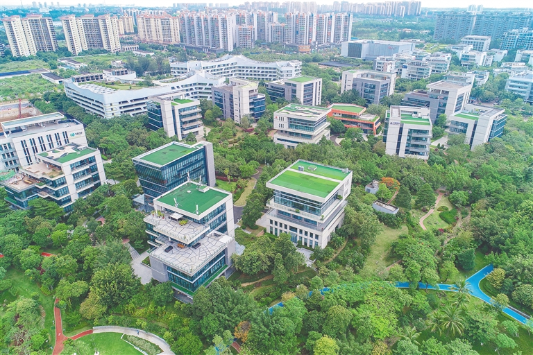 目前,海南自贸港生态软件园累计注册企业1万余家,腾讯、百度等龙头企业分公司相继落户。园区花园式办公环境,为产业人才打造集工作、居住、教育、商务、休闲等于一体的“微城市”功能配套。
