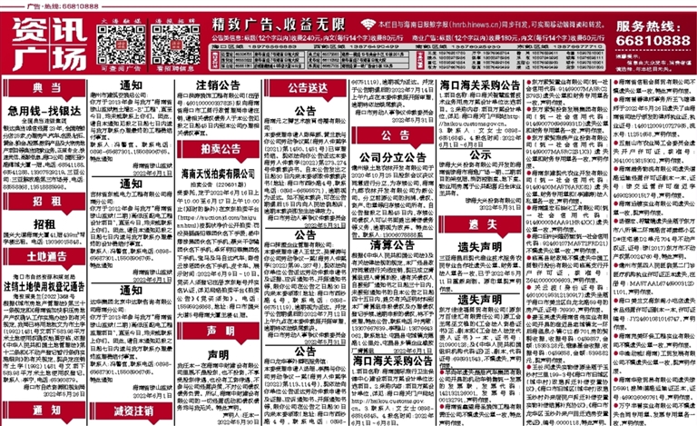 ●关云波(身份证号码:460100195312130917)遗失坐落于海口市美兰区白龙北路59号的房产证,证号:76930,声明作废。