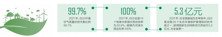 多年来,白沙依托生态优势与资源禀赋,持之以恒地用心呵护这片绿水青山,也荣膺了一个又一个“国字号”的生态文明建设荣誉。
