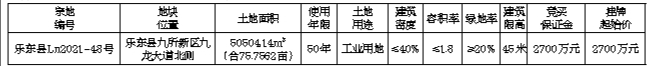 (二)按照海南省国土资源厅、海南省发展和改革委员会、原海南省规划委员会、海南省工业和信息化厅、海南省财政厅、海南省商务厅、国家税务局海南省税务局《关于印发<海南省建设用地出让控制指标(试行)>的通知》(琼国土资规〔2018〕7号)有关规定,该宗地块属于工业项目,因此拟设定该宗地块投资强度指标为250万元/亩,年度产值不低于2亿元及年度税收不低于每亩10万元/年,项目达产时间为签订《国有建设用地使用权出让合同》后的4年内。以上控制指标按规定列入《产业项目发展和用地准入协议》,属于协议内容的组成部分,竞得人在取得土地使用权后,在签订《国有建设用地使用权出让合同》同时与产业主管部门乐东黎族自治县商务招商局签订《产业项目发展和用地准入协议》,并严格按照《产业项目发展和用地准入协议》约定内容进行开发建设,否则将承担相关违约责任。