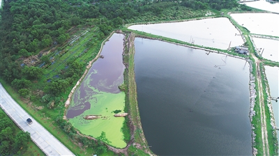 记者走访中发现,部分鱼塘已经被查处破坝,但遗留下的深坑未进行填埋,没有复耕复种,有些废弃的深坑已演变成臭水坑。爱梅水库东侧182县道旁的一大片鱼塘中,最东侧的鱼塘被分割出去,成了一个死水坑,水面上漂浮着绿色浮萍。