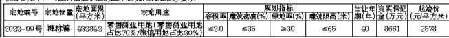 根据陵水黎族自治县人民政府《关于2022-09号宗地净地出让条件的证明》,该宗土地权利清晰、安置补偿落实到位,无法律经济纠纷、土地开发利用规划条件明确、符合土壤环境质量要求,具备动工开发所必需条件。该宗地主要建设内容为建设集滨河度假酒店、国际旅游交流中心、国际美食中心及国际购物街为一体的国际旅游中心。该宗用地投资强度指标设定为不低于350万元/亩,年度产值不低于450万元/亩,年度税收不低于12万元/亩,项目达产时间为签订《国有建设用地使用权出让合同》后的4年内。竞得人自动工之日起一年内完成投资额度不低于项目总投资额的50%,两年之内完成项目总投资额的100%。该宗用地应当实施装配式建筑,装配率不低于50%。项目建成后,旅馆用地部分不得分割销售。