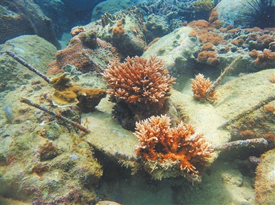 8个月过去了,在新家,我们果真获得了新生。我们家族90%以上的成员,在新家都活得好好的。科研人员定期下潜来看望我们,看到无论是在苗圃里的,还是在人工礁体上,亦或就在新的珊瑚礁盘上,我们都在快乐生长,他们欣喜地上岸汇报情况。看,阳光下, 我们伸展着“枝条”,多么惬意和美丽。