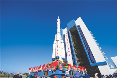 神舟十四号载人飞船与长征二号F遥十四运载火箭组合体转往发射区。