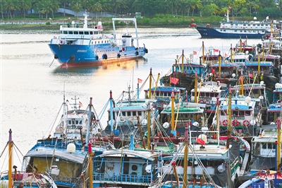 省第八次党代会报告中提出,高质量发展海洋经济,高起点推进现代化海洋牧场建设,鼓励发展深远海养殖,引导渔民“往岸上走、往深海走、往休闲渔业走”。“七一勋章”获得者,潭门镇潭门村党支部书记、村委会主任王书茂说,这给潭门的发展指明了道路。