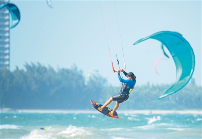 6月4日,大批游客在博鳌海滨戏水冲浪。炎夏时节的博鳌海滨,大批游客在浪尖上起舞,乐享夏日海南的清凉惬意。