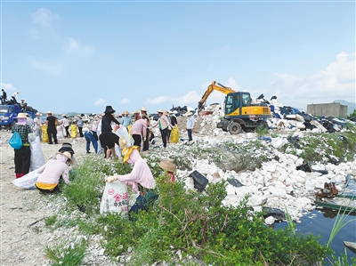 万宁各乡镇发扬互助精神,集中整治老爷海白色泡沫箱垃圾。在东澳镇新村,南桥镇的镇村干部和新村党员干部从海里捞起的垃圾已堆成小山,长丰镇的镇村干部帮忙将垃圾清运;在海圮村老爷海边,上百名从万城镇赶来的环卫工集中在这里攻坚,仅一天功夫,老爷海的“容貌”就有了很大改观……