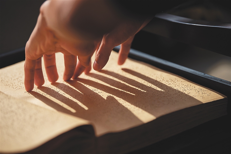 庞乔庚由于先天性眼疾造成视力障碍,眼睛承受不了长时间的视觉压力,他选择了学习盲文。在备考时,盲文课本就像他的贴身物品,他课桌上的书籍堆得像小山一样高,虽然盲文书籍的有限性和盲文的独特性,使得阅读和书写盲文速度比较慢,但师生们每天都能听到庞乔庚盲文笔与盲文板碰撞发出的“哒哒哒”声,都知道他是学校里读书最勤奋的人。