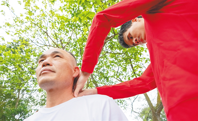 每天除了上课时间,庞乔庚还会利用空余的时间练习按摩手法,因为他知道在万千考生中,只有不断努力才能脱颖而出。
