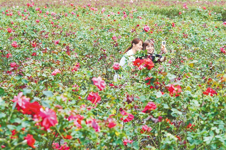 眼下,三亚玫瑰谷景区花开正艳,吸引众多游人观赏。