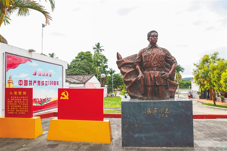 一棵百年古榕树下,党员干部、群众围聚,朗朗上口的海南话“三句半”、响亮的锣声便立时响了起来。这一幕发生在不久前的南田村,画面中的那棵古榕,正是95年前琼崖革命斗争史中南田起义的见证者。