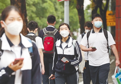 6月6日,上海全市高三、高二年级学生返校复学。此前,上海已发出通知,秋季高考统考延期至7月7日至9日举行。图为上海市大同中学的学生返校。新华社记者 刘颖 摄