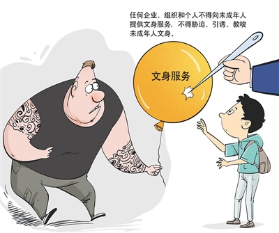 近年来,文身出现“低龄化”现象。未成年人文身容易损害未成年人身心健康,影响未成年人就业和生活,让未成年人受到不良文化侵蚀。加强未成年人文身治理,已经成为社会各界共识。
