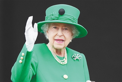 6月5日,英国女王伊丽莎白二世在伦敦白金汉宫的阳台上向民众挥手。