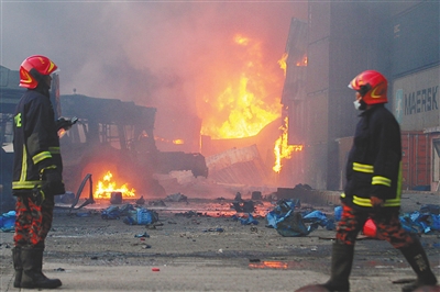 集装箱堆场发生火灾