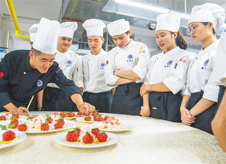 “我觉得,厨师除了要把菜做好,最重要的还是要把技术传下去,培养接班人,可以让厨艺技能改变人的命运。”纪宽宏总结道,这是他最后选择教师行业的初衷。