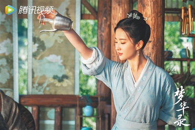 《梦华录》中的“服化道”和布景等水准都很高,淋漓尽致地展现了宋朝别致淡雅之美。无论是烟雨江南还是繁华汴京,都像一幅幅山水画卷徐徐展开。宋代文人生活四雅“点茶、焚香、插花、挂画”,在剧中比比皆是,展现了气象万千的宋“潮”文化。