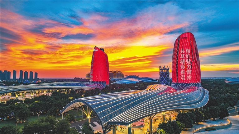 不仅是在海口,三亚、儋州等地同样点亮省六运会主题灯光秀。凤凰岛等城市地标中楼宇建筑上滚动显示的标语,吸引游人驻足流连。定格的画面成为刷屏朋友圈的瞩目打卡点,深受群众喜爱。