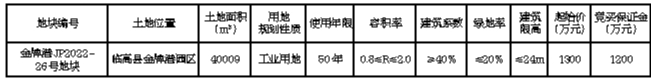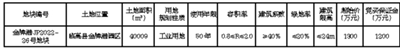(四)土地出让控制指标:投资强度不低于200万元/亩,年度产值不低于300万元/亩,年度税收不低于15万元/亩,达产时间为土地合同签订后4年内。