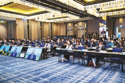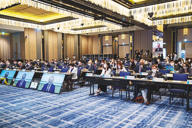 这是6月14日在韩国首尔拍摄的2022年中日韩合作国际论坛现场。