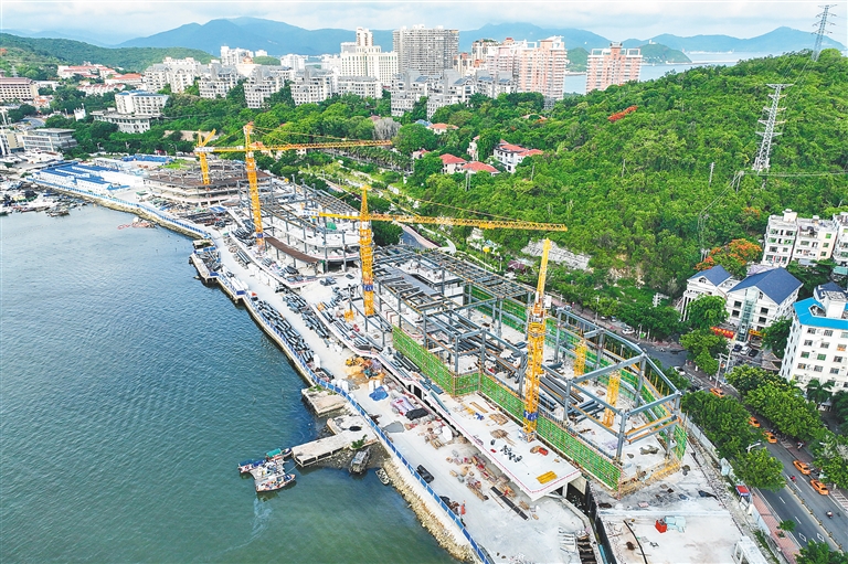 6月13日,俯瞰正在加快施工的三亚国际游艇中心。该项目位于三亚中央商务区,将建设两座游艇4S展示馆及海洋文化互动馆。截至目前,该中心已吸引国内外的39家游艇企业抢驻。本报记者 武威 摄