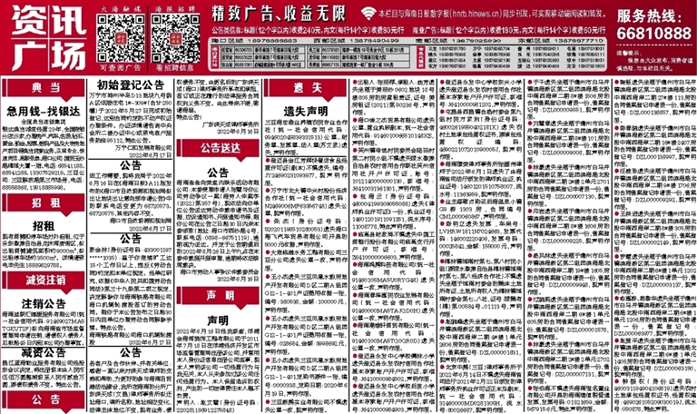 海南益联汇健康服务有限公司(统一社会信用代码:91469027MA5TGKUT2F)拟向海南省市场监督管理局申请注销,请债权人债务人见报起45日内到本公司办理事宜。