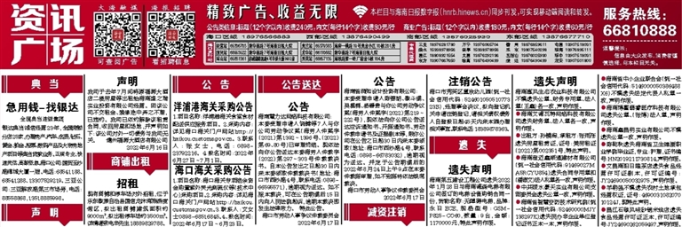 海南省洞知设计投资有限公司:本委受理申请人陈锡朗、黎斗满、吴植桐、杨善贵与你公司劳动争议案(海劳人仲案字〔2022〕第219~222号),现依法向你公司公告送达应诉通知书、开庭通知书、劳动仲裁申请书及证据副本等,限你公司在公告之日起30日内来本委领取(地址:海口市西沙路4号,联系电话:0898-66783032),逾期视为送达。并定于公告期满后的2022年8月24日上午9点在本委仲裁庭审理,如不到庭将依法缺席裁决。