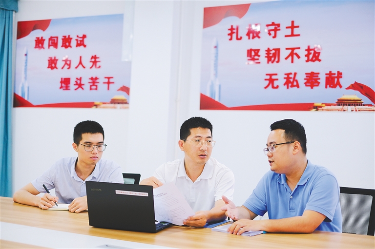 ③ 文昌国际航天城管理局办公区内,工作人员在讨论工作。