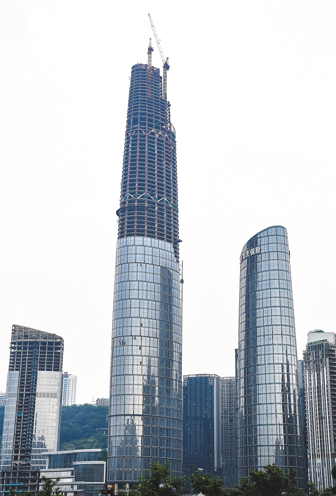 6月18日,由中建三局三公司承建的重庆陆海国际中心项目主塔楼正式封顶。重庆陆海国际中心集办公、商场、酒店、观光于一体,是重庆国际商务区的核心载体和标志性项目。项目总建筑面积约52万平方米,由两座塔楼及商业裙楼组成,其主塔楼建筑高度458.2米。