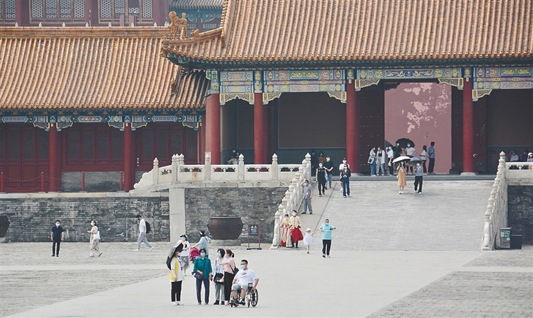 近日,随着北京市疫情逐渐稳定,北京故宫博物院游客流量开始逐日增加。故宫博物院严格执行限流开放、预约购票、佩戴口罩、游客须持有72小时核酸检测阴性证明并配合测温和健康宝查验。
