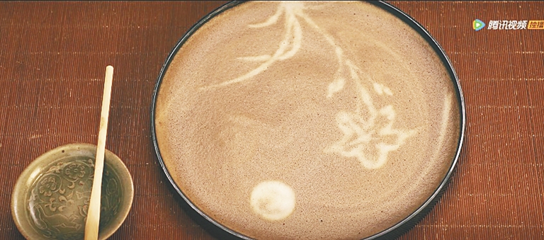 点茶之后,又有分茶。分茶又名斗茶或茶百戏,是在点茶形成的茶沫基础上,用清水作画写字的一种茶艺,有些类似于现在的咖啡拉花。唐朝诗人刘禹锡在《西山兰若试茶歌》中就提及“骤雨松声入鼎来,白云满碗花徘徊”。不过,分茶的做法并非宋朝首创,早在唐代就有了。